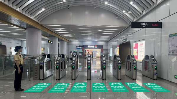 After tapping a card or scanning a code, passengers can pass through directly once the screen displays a green arrow or the green indicator light on top of the gate lights up. When passengers are queuing, the gates will remain open, enabling continuous passage without interruption.