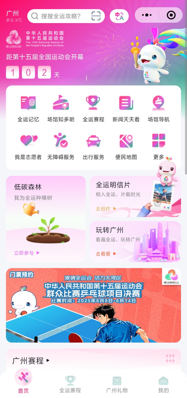 A new WeChat mini-program, "National Games Guangzhou(全運(yùn)廣州)," was officially launched on July 29 to streamline services for the upcoming 15th National Games and Paralympic Games. This platform combines navigation services and event information in one place using smart technologies like instant translation and camera-guided directions.