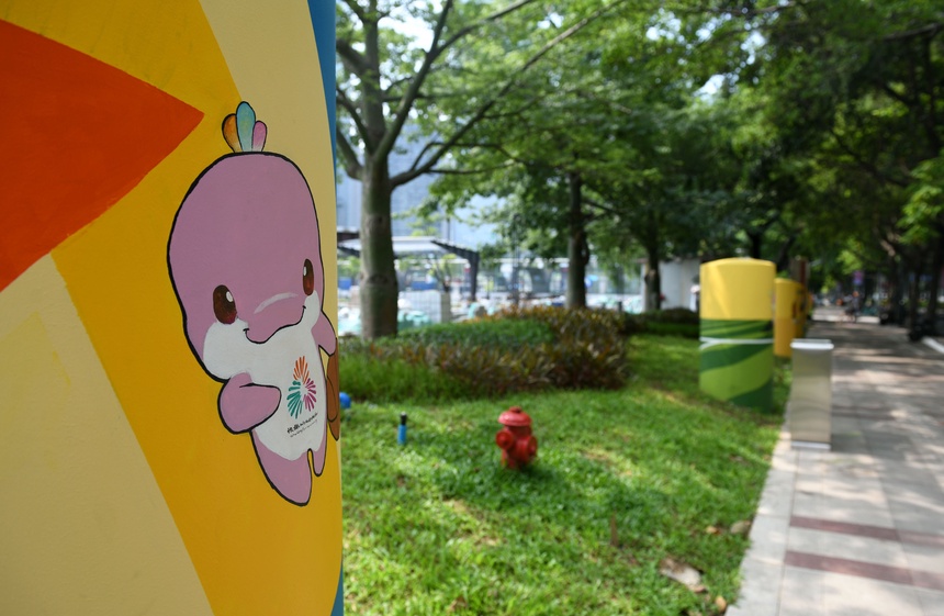 天河體育中心外圍的公共空間立柱彩繪