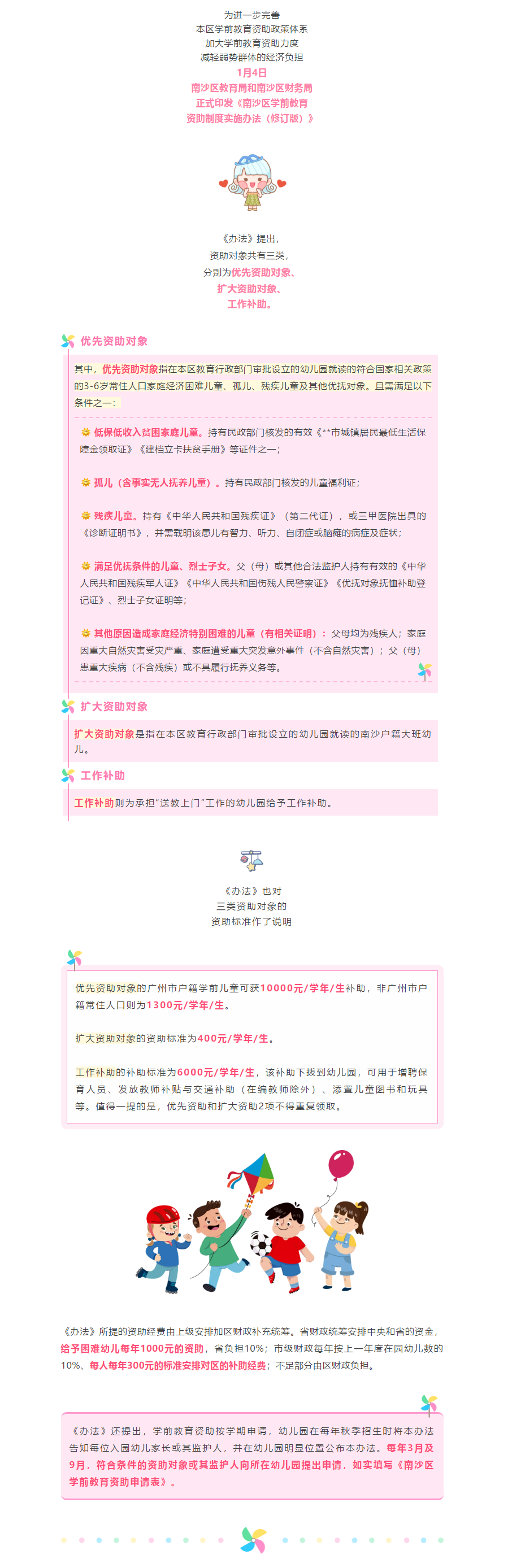 【一圖讀懂】《南沙區(qū)學(xué)前教育資助制度實(shí)施辦法(修訂版)》政策解讀