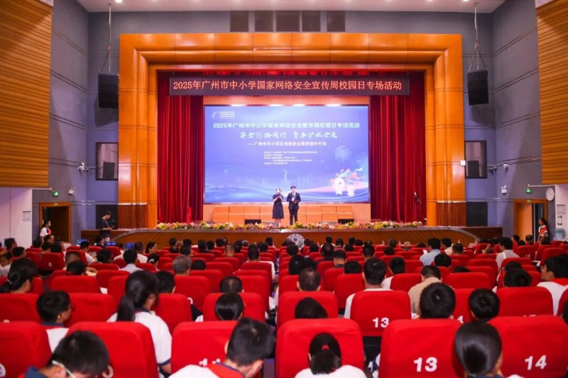 9月16日,由廣東省教育廳、中共廣州市委網(wǎng)絡安全和信息化委員會辦公室指導,廣州市教育局主辦,越秀區(qū)教育局、廣州市第三中學等單位承辦的2025年廣州市中小學國家網(wǎng)絡安全宣傳周校園日專場活動在廣州市第三中學成功舉辦,省教育廳、市委網(wǎng)信辦、市教育局、市公安局、市政務服務和數(shù)據(jù)管理局等部門領(lǐng)導出席活動。本次活動以“安全e路同行,青春護航全運——廣州市中小學生網(wǎng)絡安全素養(yǎng)提升行動”為主題,旨在通過一系列豐富多彩的活動,提升師生網(wǎng)絡安全意識,共同營造健康、綠色、安全的校園網(wǎng)絡環(huán)境。