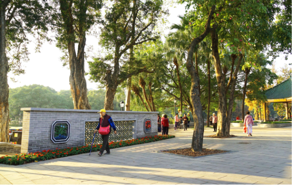 圖:荔灣湖公園東門突出西關(guān)風(fēng)情水岸(圖源:荔灣區(qū)政府)