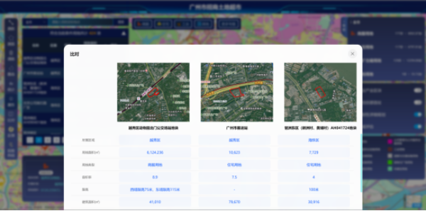 本次新增“用地比選”功能,支持用戶將多宗意向地塊納入比選清單,同屏橫向?qū)Ρ雀黜?xiàng)指標(biāo)條件,直觀呈現(xiàn)各宗地的用地性質(zhì)、用地面積、容積率及其他規(guī)劃管控信息。通過可視化對比界面,地塊間的優(yōu)劣勢一目了然,有效解決企業(yè)在選址過程中信息整合難、分析效率低的痛點(diǎn),助力企業(yè)快速鎖定契合發(fā)展需求的優(yōu)質(zhì)地塊。