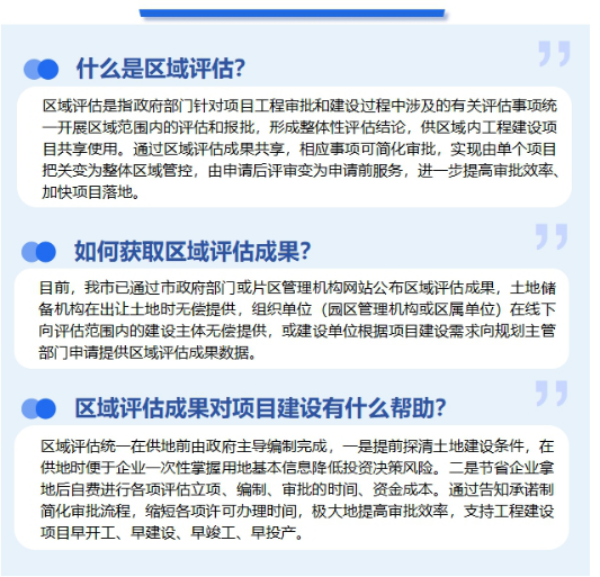 全面上線全市已編區(qū)域評估成果,涵蓋76個(gè)片區(qū)、606.8平方公里的366個(gè)單項(xiàng)評估結(jié)論,進(jìn)一步擴(kuò)大了區(qū)域評估成果向社會(huì)投放使用、無償共享的途徑。用戶點(diǎn)擊地塊所在位置后,平臺(tái)可自動(dòng)彈出該地塊對應(yīng)已完成的區(qū)域評估成果清單,投資者可更加便捷、直接地掌握心儀地塊已編區(qū)域評估情況,此舉將大幅減少企業(yè)重復(fù)評估成本,助力企業(yè)輕裝上陣、高效發(fā)展。