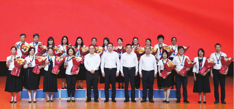 為慶祝全國第41個教師節(jié),進一步激勵廣大教師和教育工作者獻身教育事業(yè),此次大會為“2024年全國民族團結進步模范個人”王志英、“2024年全國模范教師”湛建霞等20位先進教師代表頒發(fā)獎牌。