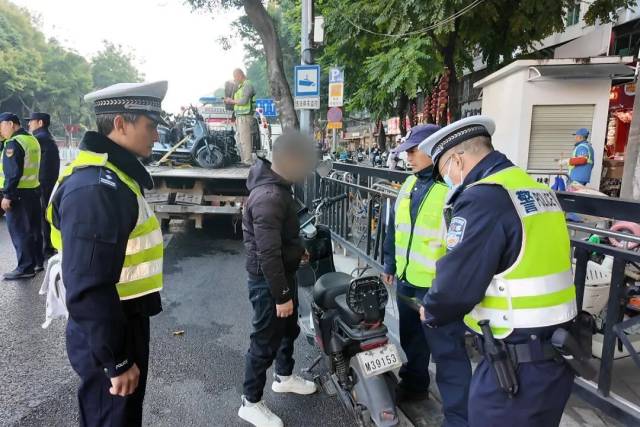 整治行動(dòng)期間,海珠警方在重點(diǎn)路口、路段設(shè)置多個(gè)查車點(diǎn)與巡控崗,查處涉牌、非法改裝、逆行、不按規(guī)定佩戴頭盔及違規(guī)停放等違法行為。