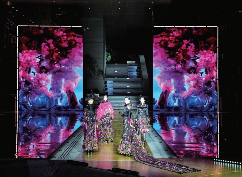 廣州時裝周以數(shù)字賦能為核心,在保利商旅·廣州設計之都時光匯打造全球首個“時尚元宇宙”體驗場景。該場景是由4K花園匠心構建,融合8K超高清、3D VR及5G傳輸?shù)葦?shù)字技術搭建三機位全景直播系統(tǒng),搭配外場3D大屏與超高清巨幕的聯(lián)動展示,為觀眾帶來沉浸式、個性化觀秀體驗,讓服裝的精致細節(jié)與走秀的震撼氛圍被清晰捕捉。項目還打通線上線下傳播鏈路,支持多平臺VR直播與多終端同步觀看,真正實現(xiàn)了時尚秀場的時空破界。