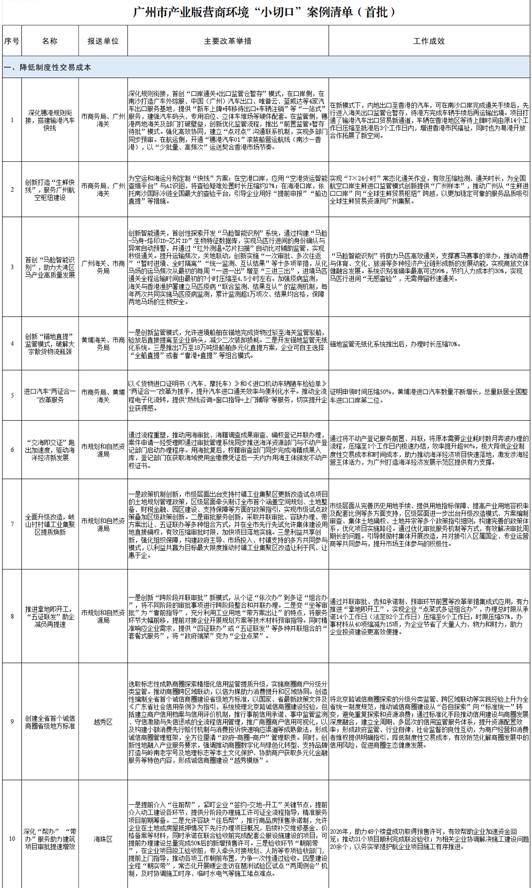為持續(xù)深化產(chǎn)業(yè)版營(yíng)商環(huán)境改革,助力現(xiàn)代化產(chǎn)業(yè)體系建設(shè),近日,經(jīng)市政府同意,廣州市發(fā)展和改革委員會(huì)印發(fā)《廣州市實(shí)施產(chǎn)業(yè)版營(yíng)商環(huán)境“小切口”改革方案》,并同步公布《廣州市產(chǎn)業(yè)版營(yíng)商環(huán)境“小切口”案例清單(首批)》。