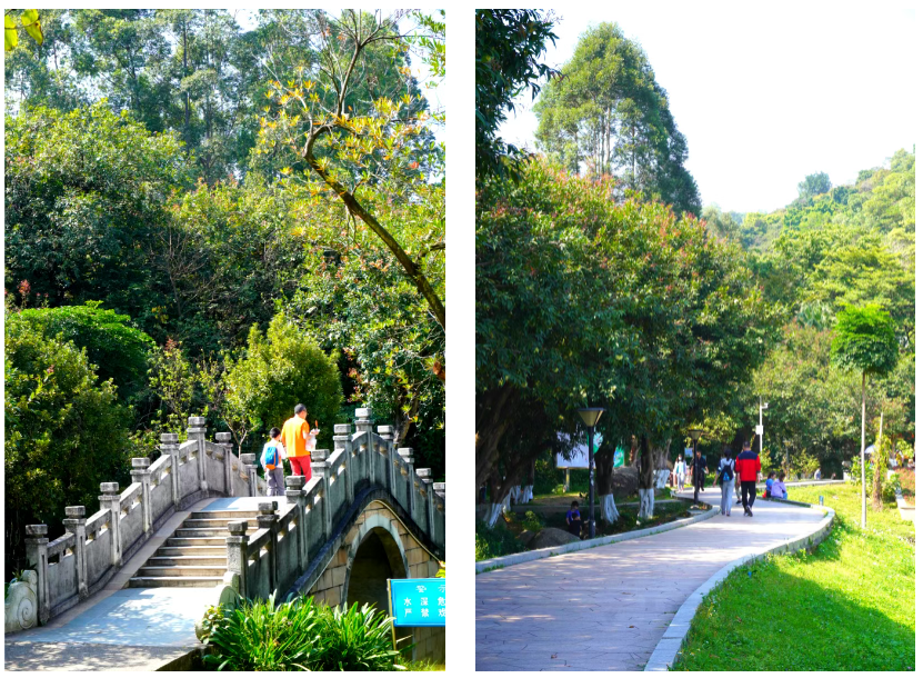 公園內(nèi)設(shè)有東、西、中三條登山路徑,它們或是鋪設(shè)著鵝卵石的幽徑,或是搭建于林間的棧道與階梯,亦或是平緩舒適的綠色步道。不管你是喜歡休閑漫步還是想要挑戰(zhàn)自我,都能在其中挑選到心儀的登山路線。