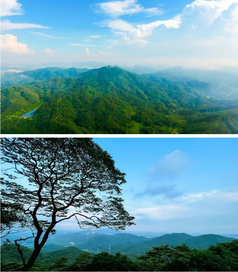 登頂之后美麗的流溪河蜿蜒而過,從城景色盡收眼底。山頂建有觀景平臺(tái)和電視發(fā)射塔,是拍攝城市全景和流溪河風(fēng)光的絕佳位置,適合帶娃或約上朋友邊聊邊走,輕松解鎖“小成就感”。