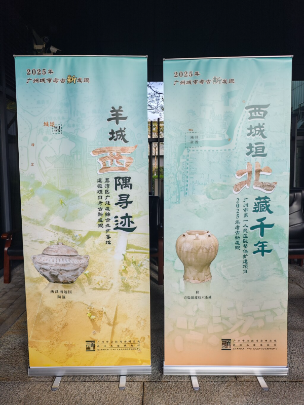 廣州市第一人民醫(yī)院整體擴(kuò)建項(xiàng)目位于“廣州古城至珠江北岸”地下文物埋藏區(qū)范圍內(nèi)。2014年在醫(yī)院磐松樓2號(hào)樓發(fā)現(xiàn)了宋、明清時(shí)期城墻遺址,2022年4月至2025年8月在東風(fēng)西路醫(yī)院北部的高崗遺址發(fā)現(xiàn)了西漢南越國至唐宋時(shí)期的排水溝、水井、灰坑、灰溝等生活遺跡,西漢至隋唐時(shí)期墓葬以及清代城壕護(hù)堤及埠頭。2025年,醫(yī)院配合廣州市第一人民醫(yī)院整體擴(kuò)建項(xiàng)目開展了第5、6次考古發(fā)掘。其中項(xiàng)目北區(qū)清理了西漢南越國時(shí)期至宋代灰坑、水井、墓葬等各類遺跡約900處,出土陶瓷器等各類文物約1000件(套),顯示遺址各時(shí)期皆存在較高等級的建筑,其性質(zhì)在墓地與生活居址間多次轉(zhuǎn)變。南區(qū)的JPG2發(fā)現(xiàn)了宋至民國時(shí)期護(hù)城河河道及其堤岸遺跡,與文獻(xiàn)中宋代筑西城、開西濠,而明代“因舊浚濠”等記載相符;JPG1揭露了長約125米的護(hù)坡墻(Q1),使用大陶罐、麻石與青磚分段砌筑。結(jié)合墻體中鑲嵌的2塊題記石碑,以及出土的青花帶字瓷盤,判斷Q1應(yīng)為城西方便醫(yī)院于民國六年(1917年)修筑,是該院保存的一處較為完整的歷史遺跡。此次發(fā)掘?qū)ρ芯课鳚h南越國至民國時(shí)期廣州西北部區(qū)域的城市發(fā)展歷程、歷史地理與水脈變遷具有重要意義。