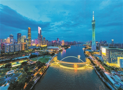 廣州海心橋去年建成,是首座飛架珠江兩岸的斜拱曲梁人行橋