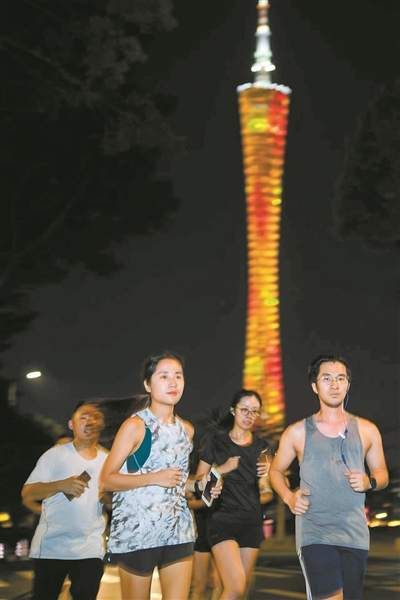 廣州塔旅游區(qū)的美麗夜景吸引了不少“夜跑族”前來
