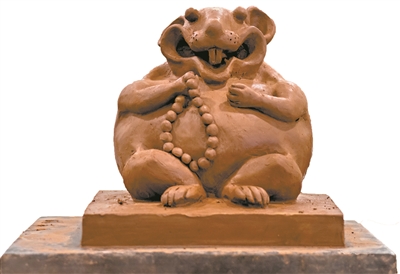 在創(chuàng)作泥稿之前,許鴻飛構(gòu)思并畫(huà)了很多創(chuàng)作草圖,包括正面、側(cè)面、背面的不同角度的造型。最后定稿的這尊鼠生肖以擬人、夸張的手法塑造得惟妙惟肖:體型肥碩的老鼠盤腿坐著、悠閑自得,一副富足喜慶的姿態(tài)。它咧...