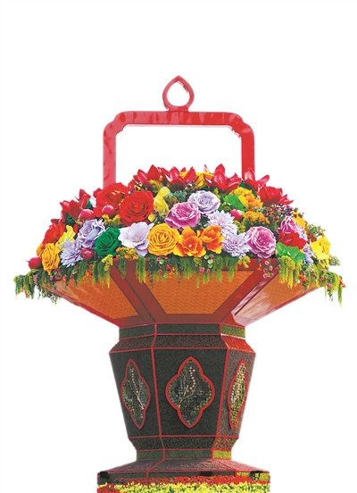 花籃上直徑超過(guò)1米的大花有120多朵,小花有1600多朵,以木棉花為主,搭配牡丹、月季、玉蘭等,百花齊放,象征春滿大地?;ɑ@籃身共有六個(gè)面,每個(gè)面15平方米,采用約11萬(wàn)株紅草繡植,中間以海棠...