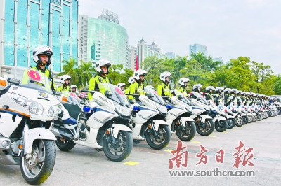廣東公安交警整裝待發(fā),護(hù)航春運道路交通安全。