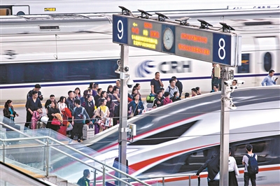 廣州火車站發(fā)出旅客列車64列,包含18趟臨客,客流主要集中在湖南、湖北、四川、江西、安徽等方向,當(dāng)天發(fā)送旅客11.4萬人次左右。