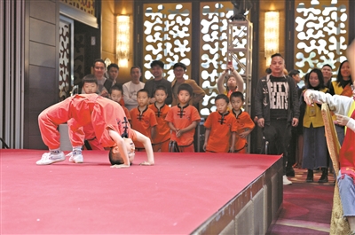 在團(tuán)年飯上,小朋友們組成的中華武魂進(jìn)行了表演。
