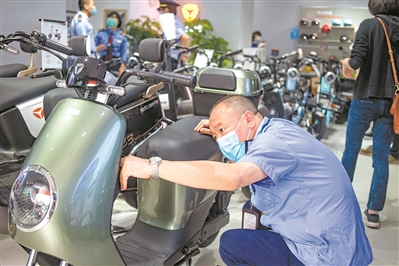 廣州市市場監(jiān)管部門執(zhí)法人員檢查生產(chǎn)、銷售非法改裝電動自行車情況。