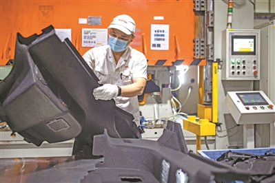 上周五,一場暴雨的沖洗過后,位于增城區(qū)汽車產業(yè)園內的三泰車飾自動化生產線上,如往常一般正有條不紊地進行汽車內飾成型件的生產,平靜之下這里也醞釀著“新機”——該公司新研發(fā)的新能源汽車電池保護材料獲得驗收,即將進入某知名車企采購名單中。