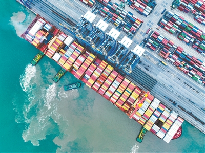 全球最大集裝箱船“地中海伊琳娜”號(hào)首航廣州港南沙港區(qū)