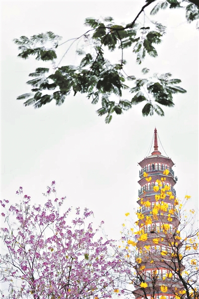 當春風掠過珠江,廣州便被花喚醒。越秀山下,木棉率先點燃枝頭,紅若火焰;人民北路上,紫荊舒展成云,粉色沿街鋪開;洲頭咀公園環(huán)島路旁,黃花風鈴木一樹樹盛放,仿佛把整條道路點亮成金色。廣州的春天,總是從一朵花開始,漸漸鋪展成整座城市的顏色。