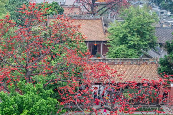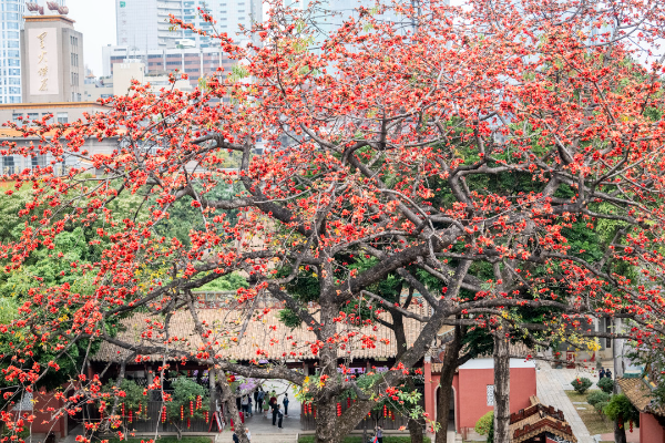 其中,350多歲的“木棉王”,樹(shù)高27米,氣勢(shì)拉滿(mǎn),蒼勁古枝綴滿(mǎn)艷紅英雄花,與藍(lán)瓦黃墻相映,盡顯羊城春日盛景,成為游客打卡熱點(diǎn)。這株被譽(yù)為“中國(guó)最美木棉”的古樹(shù),成為廣州人心中的自然地標(biāo)與情感圖騰。