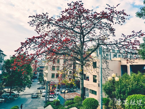 走在陵園西路,繁花綻放,如烈焰綿延,與往來(lái)車(chē)流相映成趣。車(chē)輛緩緩穿行在花影之下,車(chē)窗外是流動(dòng)的火紅,一城煙火,一路芳華。