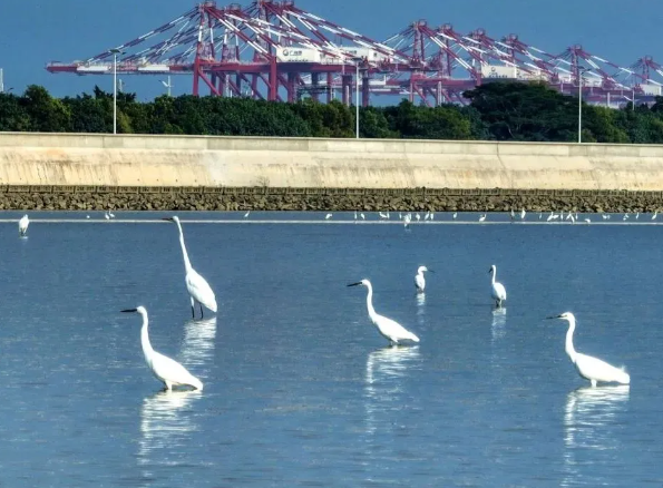 閘口旁的綠樹是它們的“休憩站”,水道灘涂是“自助餐廳”,樓宇與港口之間的風,都成了它們的“空中跑道”,而南沙人早已習慣與候鳥為鄰,以“不打擾、護生態(tài)”的溫柔守護著這份人與自然的和諧共生。