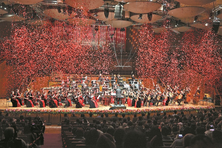 國潮粵韻的醇厚旋律次第奏響,更有驚喜返場。在現(xiàn)場觀眾經(jīng)久不息的掌聲和歡呼聲中,樂團數(shù)次返場,加演若干曲目。
