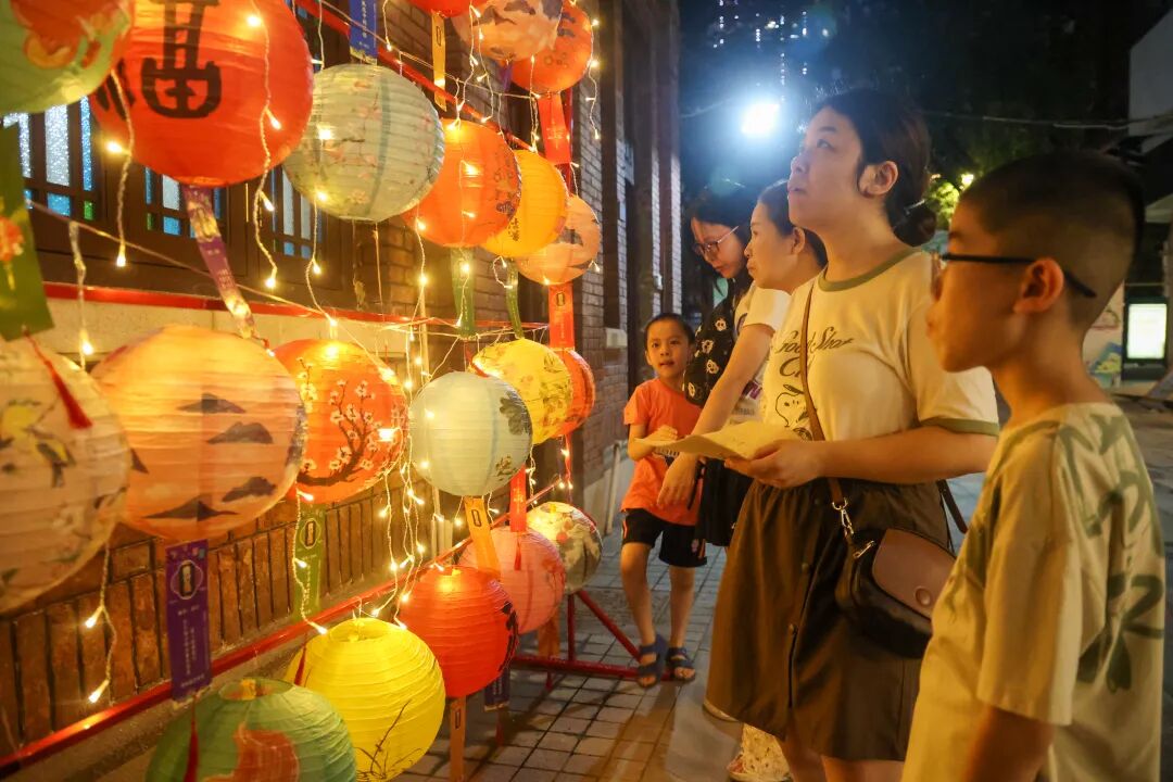 當(dāng)天下午五時(shí)許,活動(dòng)在熱鬧的游園會(huì)中開場。會(huì)場入口處,一盞盞寫有謎題的傳統(tǒng)紙燈籠隨風(fēng)輕搖,構(gòu)成了一條充滿古風(fēng)雅韻的“月夜燈謎”長廊。居民們或凝神思索、或笑語討論,猜中者喜笑顏開,獲得一盞心儀的彩燈。