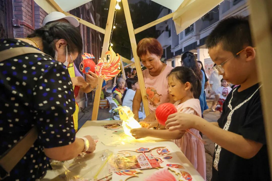 燈籠DIY區(qū)是一片溫馨的創(chuàng)作天地,一個(gè)個(gè)造型可愛的兔子燈、錦鯉燈在孩子們手中逐漸點(diǎn)亮,承載著美好祝愿。