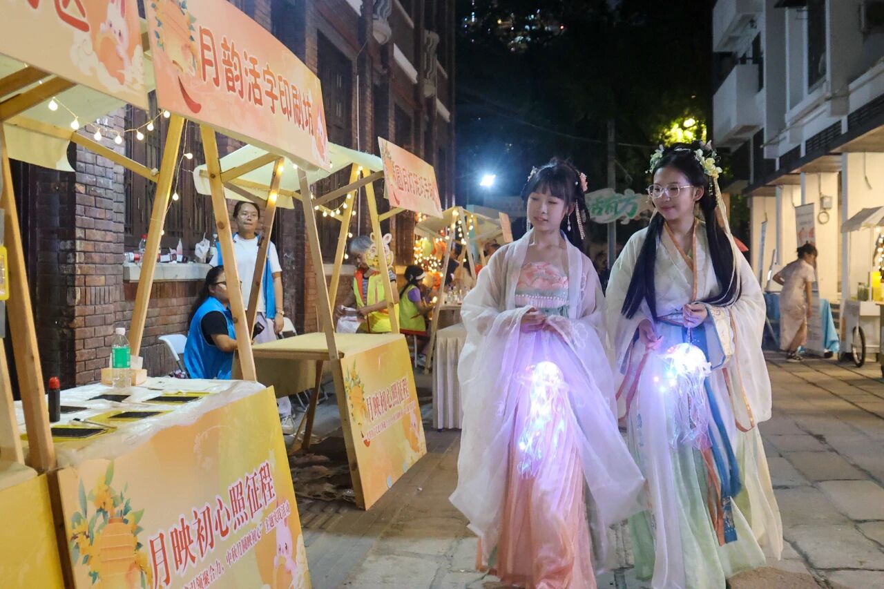 大人孩子圍坐一起,在淡淡的墨香中體驗(yàn)活字印刷,將“花好月圓”“平安喜樂”等中秋美好祝愿印在紙上,也將非遺文化的種子印在心間。
