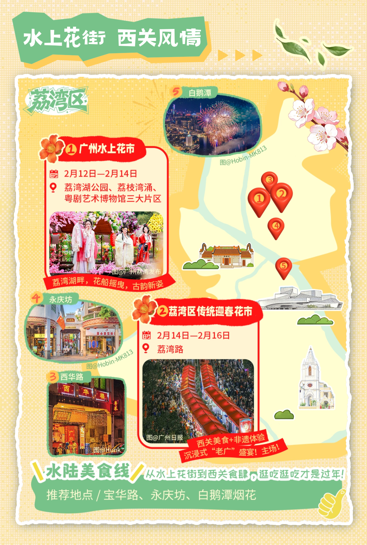 水上花市花船搖曳,傳統(tǒng)花市煙火氤氳,串聯(lián)荔灣湖、荔枝灣涌、西關(guān)食肆,將水上風(fēng)情、非遺文化、西關(guān)美食完美融合,沉浸式感受老廣最地道的新春盛宴。