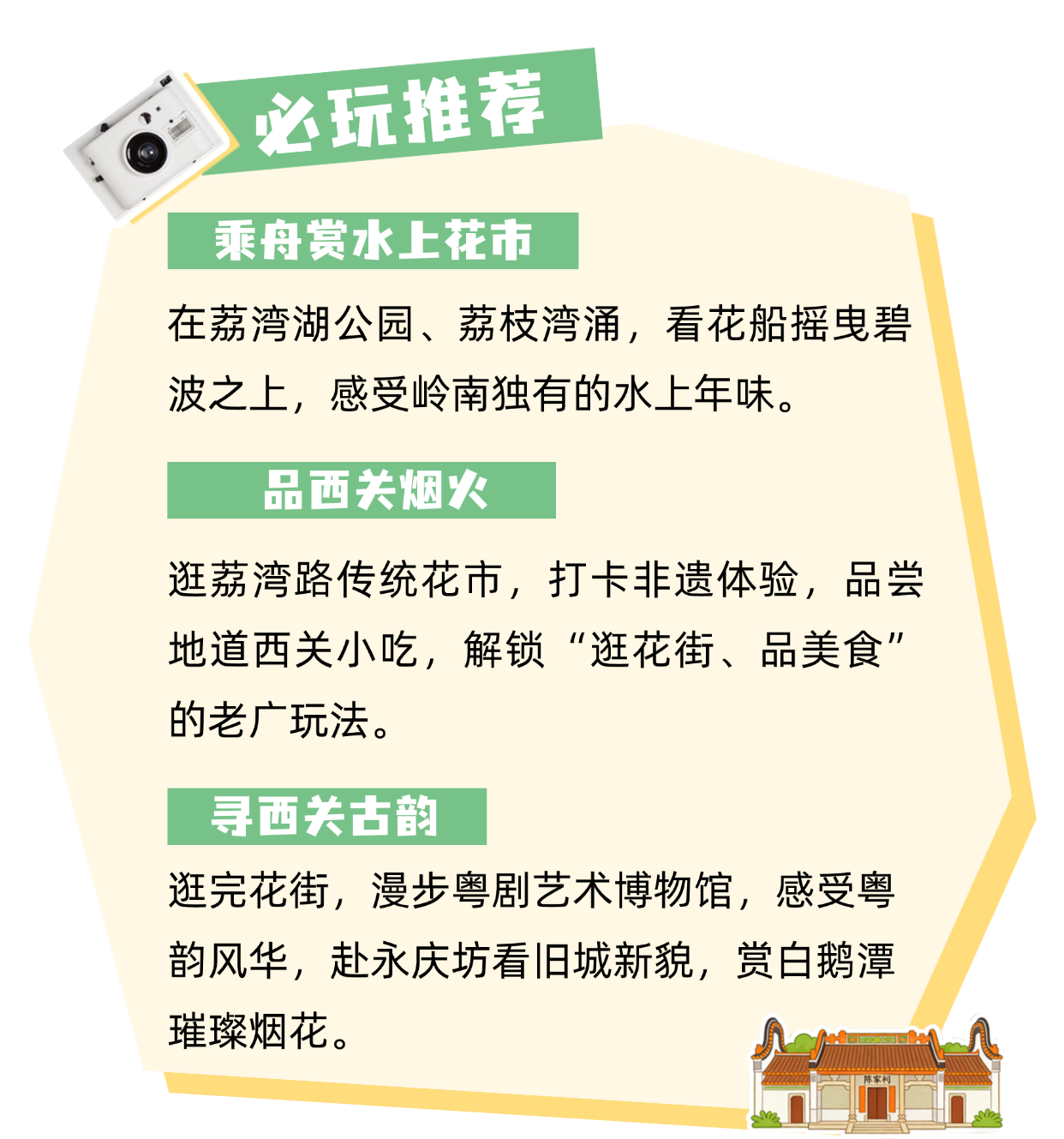 ?? 花市亮點(diǎn):水上游花市,岸上品西關(guān)。