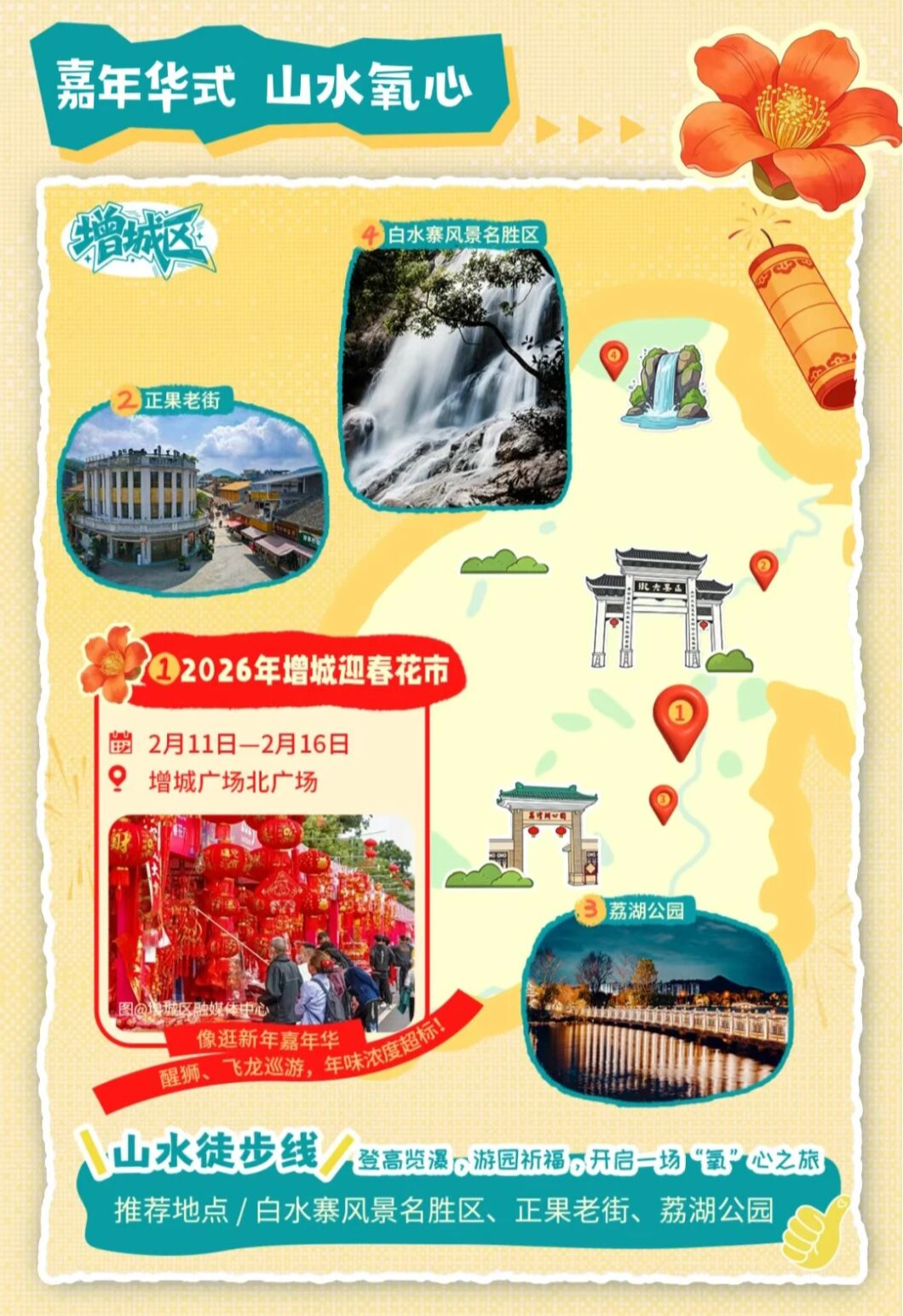 增城廣場花市年味拉滿,醒獅、飛天龍鳳輪番上演,打造新年嘉年華式花市,搭配山水徒步線,解鎖新春“氧”心體驗。