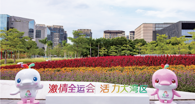 在廣州體育館旁邊的體育公園,“喜洋洋”和“樂融融”吉祥物雕塑憨態(tài)可掬。白云湖大道沿線布置了四組以乒乓球、籃球、足球、羽毛球為主題的吉祥物雕塑,通過藝術(shù)的語言,將“激情全運會 活力大灣區(qū)”的賽會主題融入公共空間。
