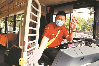 “你好,謝謝!”461路線途經(jīng)廣交會展館,線長鄧耀輝在駕駛室防護(hù)門后,一邊向每個上車的乘客問好,一邊左手持測溫槍嫻熟地為乘客測溫,右手抬起引導(dǎo)乘客往車廂內(nèi)走。據(jù)介紹,“這廂有禮”作為“友愛在車廂”延伸品牌活動,通過車長在營運中做到安全行車、禮讓斑馬線、堅持規(guī)范使用服務(wù)敬語,弘揚雷鋒精神,營造溫馨和諧的乘車環(huán)境,傳遞友愛文明新風(fēng),全面推動優(yōu)質(zhì)服務(wù)工作做細(xì)做實。