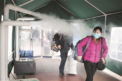今年廣州火車(chē)站新引入4個(gè)霧化式防疫消毒通道。