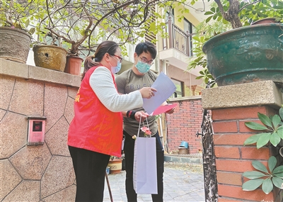 永平街新順社區(qū)居委會(huì)分成兩個(gè)小組,工作人員逐家逐戶送去解除居家隔離醫(yī)學(xué)觀察告知書,并為每家住戶送上一份愛心禮包,里面裝有4只蘋果、2朵康乃馨、1個(gè)防疫包、1封感謝信,寓意平安順?biāo)?,愛與溫馨一路相伴。封控區(qū)內(nèi)52名居民又將重新投入到忙碌的工作生活中。