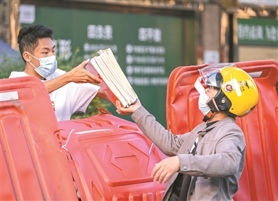 管控區(qū)內(nèi)有學(xué)生請快遞小哥送來學(xué)習(xí)資料
