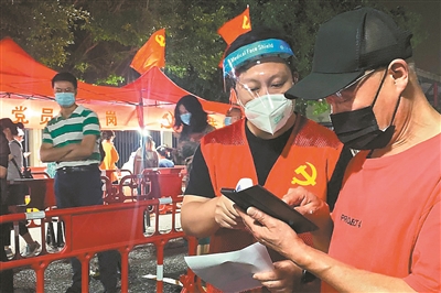 在多個核酸采樣點,引導宣傳、秩序維持等相關服務崗位上隨處可見身穿“紅馬甲”的黨員志愿者,他們沖鋒在疫情防控第一線。