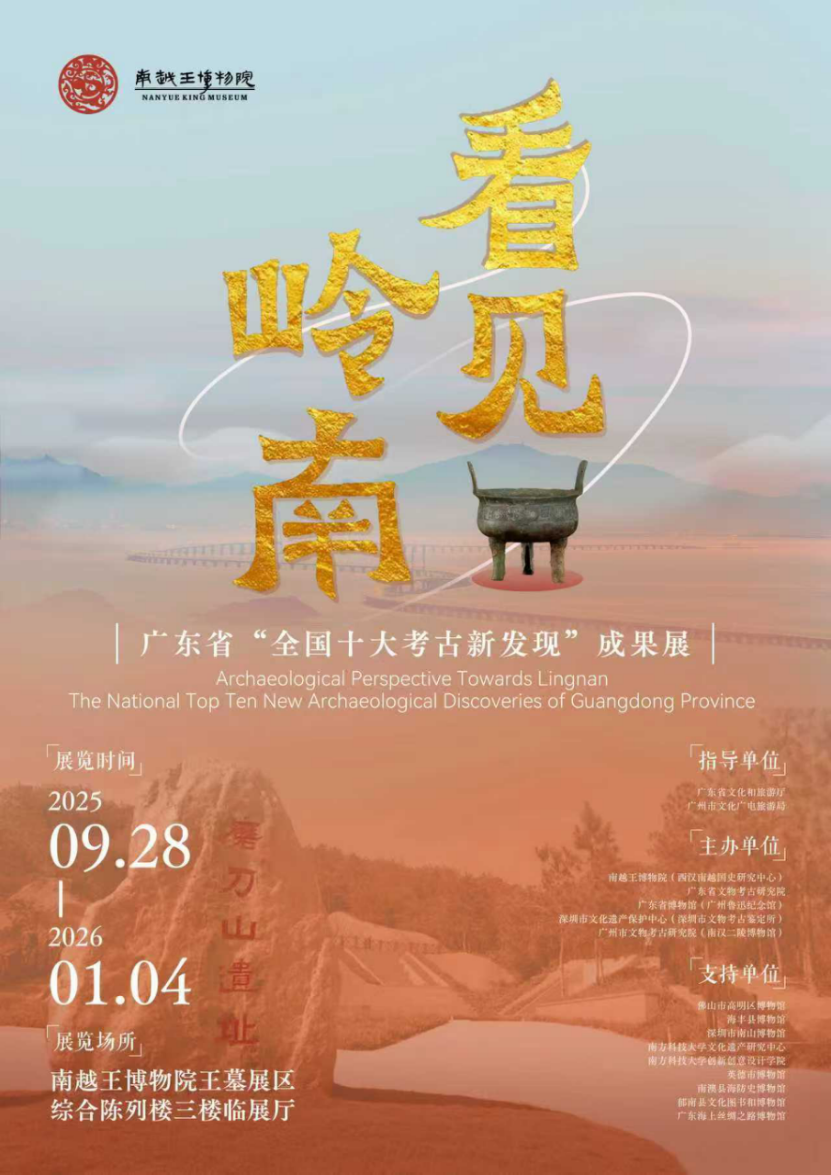 9月28日,“看見嶺南——廣東省‘全國十大考古新發(fā)現(xiàn)’成果展”在南越王博物院(王墓展區(qū))綜合陳列樓三樓臨展廳展出。本次展覽由廣東省文化和旅游廳、廣州市文化廣電旅游局指導(dǎo),南越王博物院(西漢南越國史研究中心)、廣東省文物考古研究院、廣東省博物館(廣州魯迅紀(jì)念館)、深圳市文化遺產(chǎn)保護(hù)中心(深圳市文物考古鑒定所)、廣州市文物考古研究院(南漢二陵博物館)主辦,共九家文博單位和研究機(jī)構(gòu)給予支持。
