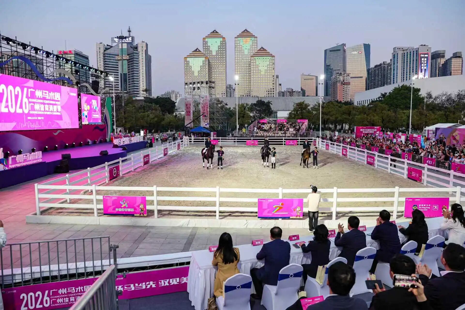 日前,2026廣州馬術(shù)周暨2026廣州體育消費季啟動儀式在廣州天河體育中心舉行。這場融合專業(yè)化與普及化于一體的活動以“躍馬當(dāng)先 馭見美好”為主題,以馬術(shù)運動為橋梁,以體育消費為紐帶,匯聚海內(nèi)外馬術(shù)運動員、行業(yè)嘉賓與市民游客,共同開啟這場融合馬術(shù)競技、體育消費與文化交流的年度盛會,推動體育文化與城市發(fā)展深度融合,打造粵港澳大灣區(qū)體育產(chǎn)業(yè)發(fā)展新標(biāo)桿。市體育局、市商務(wù)局、市文化廣電旅游局、市協(xié)作辦、有關(guān)駐穗單位代表等領(lǐng)導(dǎo)嘉賓出席啟動儀式。