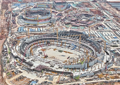 這是2月27日拍攝的中建八局承建的南沙全民文化體育中心綜合體綜合體育場施工現(xiàn)場(無人機照片)。