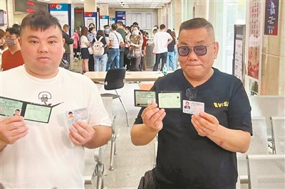 梁先生(右)和同伴首批領取內(nèi)地駕駛證