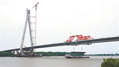 ■作為南中高速項(xiàng)目的關(guān)鍵控制性工程,洪奇門(mén)特大橋全長(zhǎng)1126米,為主跨520米的雙塔雙索面鋼箱梁斜拉橋。