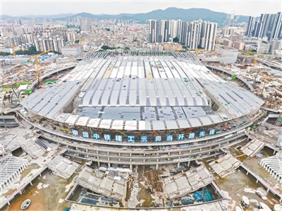6月19日,隨著最后一榀鋼結(jié)構(gòu)桿件拼裝完成,廣州白云站站房全面封頂,建設(shè)全面進入室內(nèi)外裝飾裝修階段。