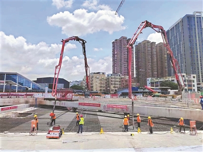 近日,伴隨著混凝土澆筑設(shè)備的轟隆聲,四線換乘的廣州地鐵十號(hào)線西塱站主體結(jié)構(gòu)順利封頂,至此,十號(hào)線(西塱-石牌橋)土建工程累計(jì)完成75%。同時(shí),廣州地鐵更新了截至6月底的各在建新線路施工進(jìn)度,四條線路土建進(jìn)度超9成。