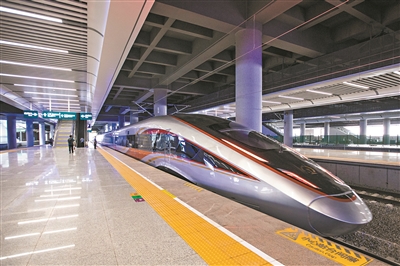 廣汕高鐵最大的車站新塘站9月26日正式投入運(yùn)營(yíng),圖為復(fù)興號(hào)智能車組駛進(jìn)新塘站